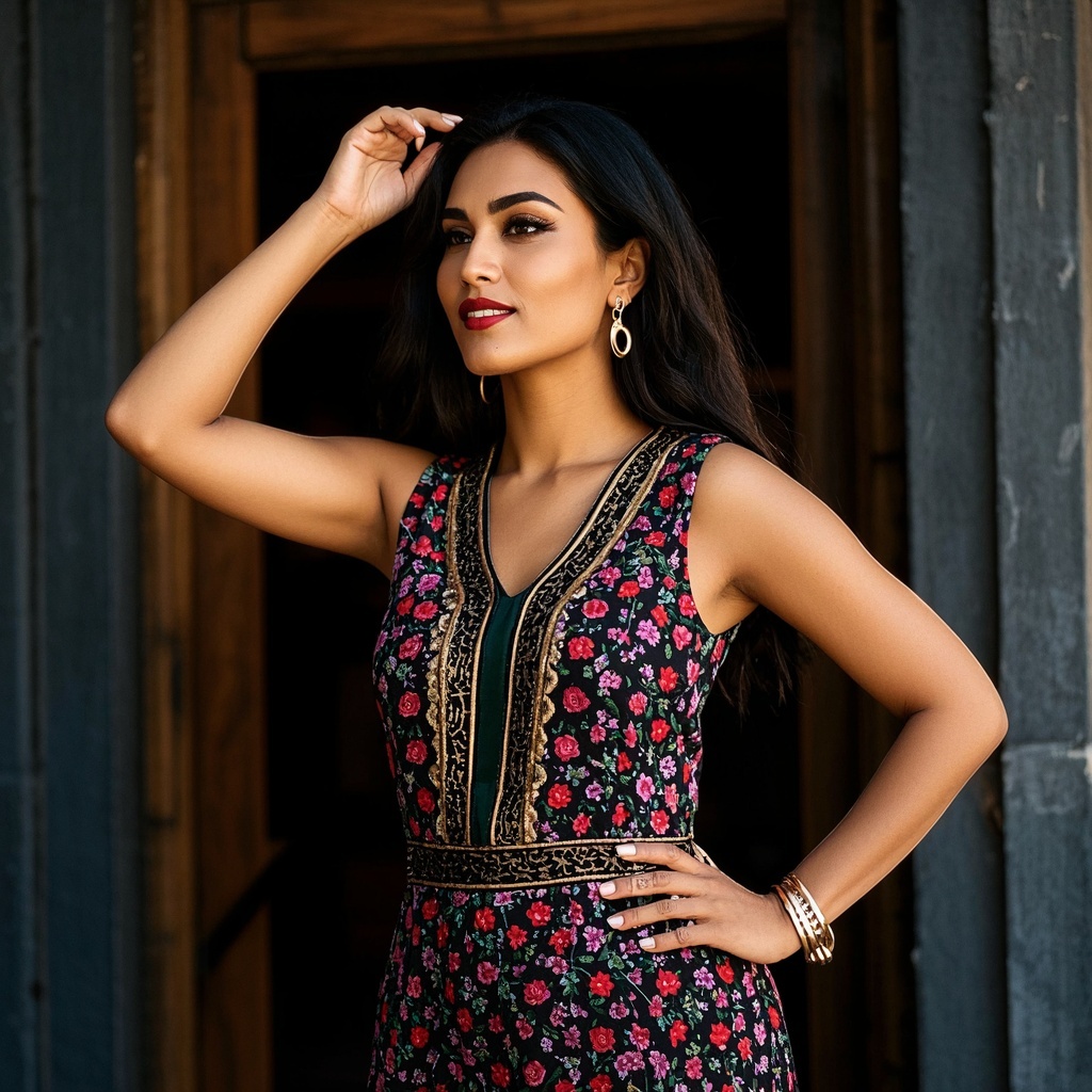 Colorful Fusion Gown with Gold Border.jpg