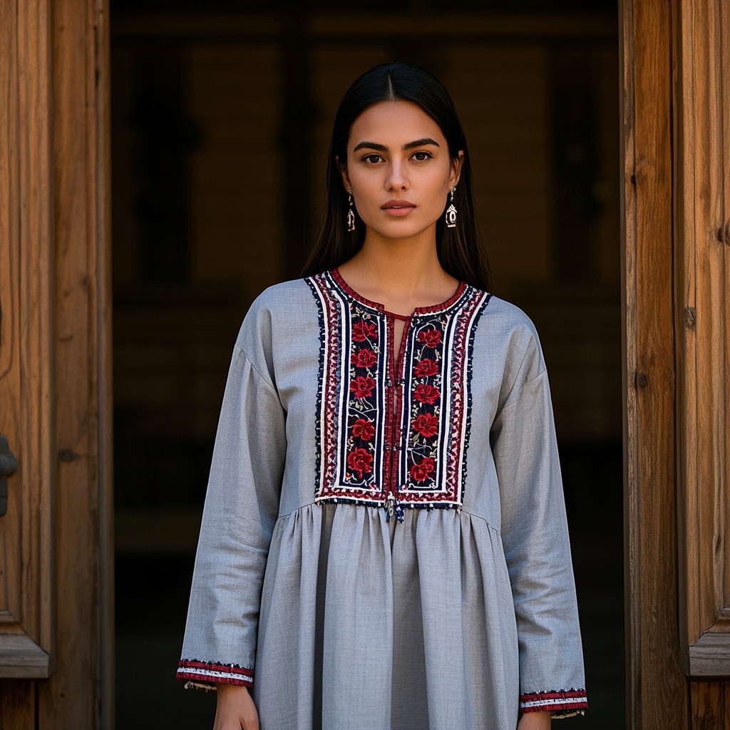 Classic Asymmetric Dress with Thread Embroidery.jpg